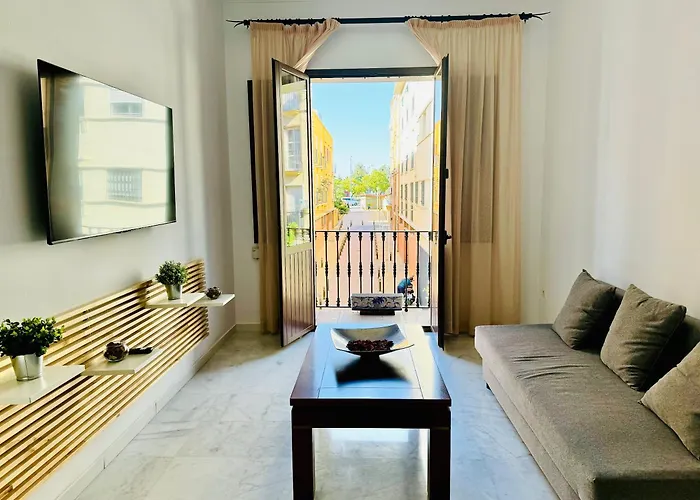 Die Unterkünfte bietet eine voll ausgestattete Küche mit einem Herd und einem Geschirrspüler an. Die Bushaltestelle Chapina - Torre Sevilla liegt ganz nah an diesem 50 m² großen Apartment.